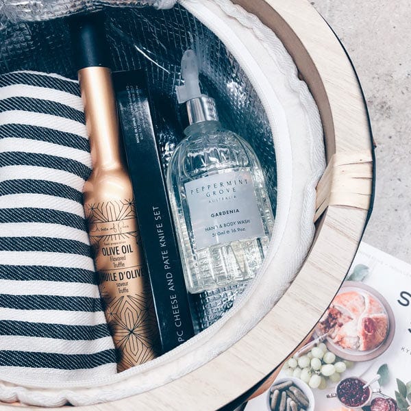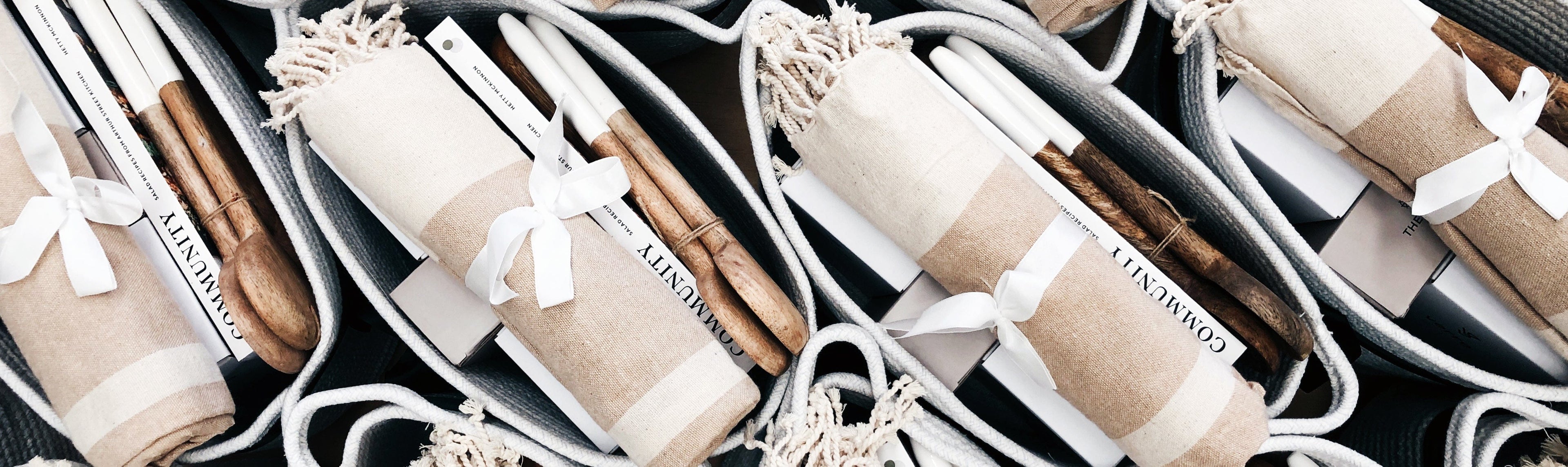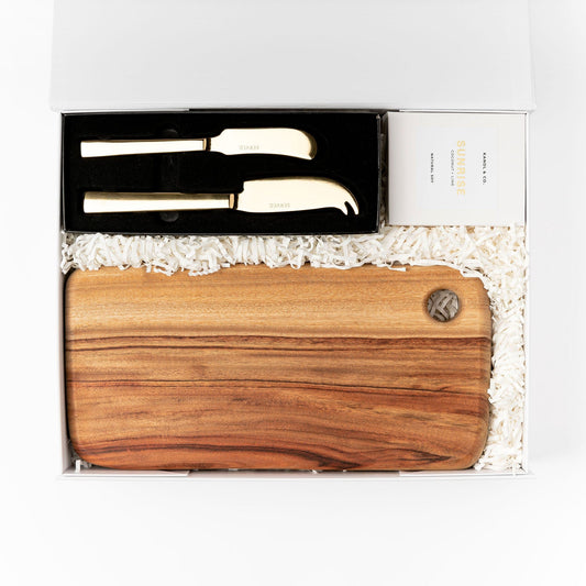 One of our most popular gifts is With Gratitude, which includes practical items like our serving board, knife set and soy candle.