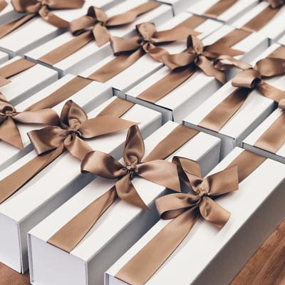 All gifts include free plain ribbon colour of your choice to match your branding OR you can customise your ribbon by ordering logo branded ribbon here.