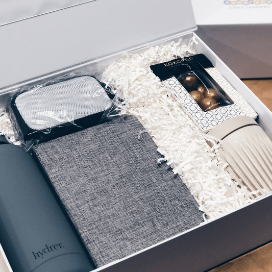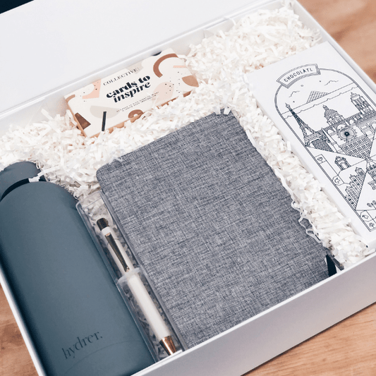 One of our most popular gifts is Bound to Inspire, which includes practical items like our soft touch notebook, ballpoint pen and reusable keep cup.