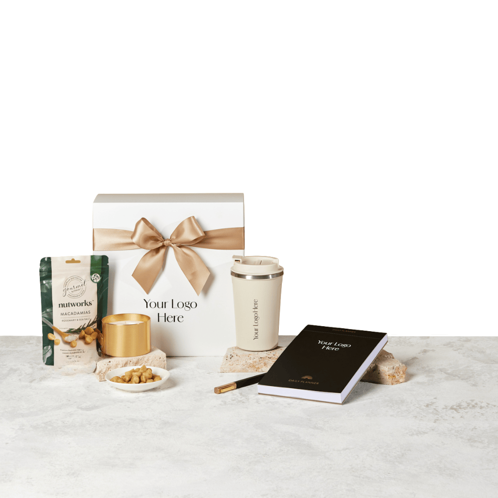 Set the tone with the warm glow of the HORIZON Brushed Gold Soy Candle and stay organised in style with The Organiser A5 Daily Task Planner, paired with a sleek Soft Touch Square Pen in Black & Gold.