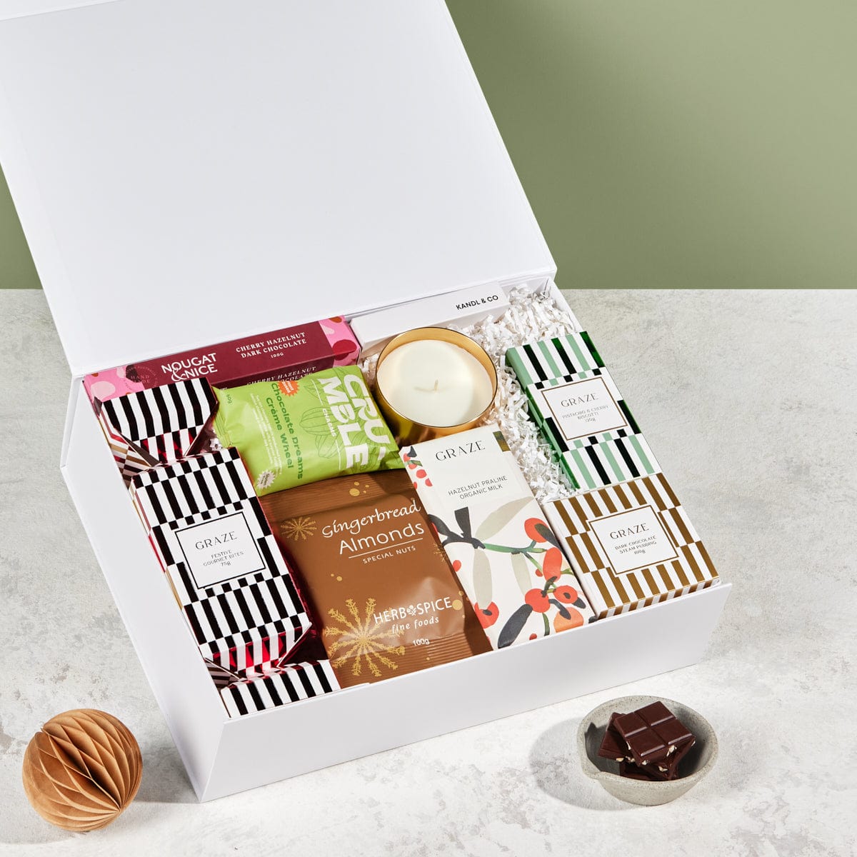 Paired with the soft glow of the HORIZON Brushed Gold Soy Candle plus a FREE Christmas Bauble, it’s a truly indulgent gift for every festive foodie.