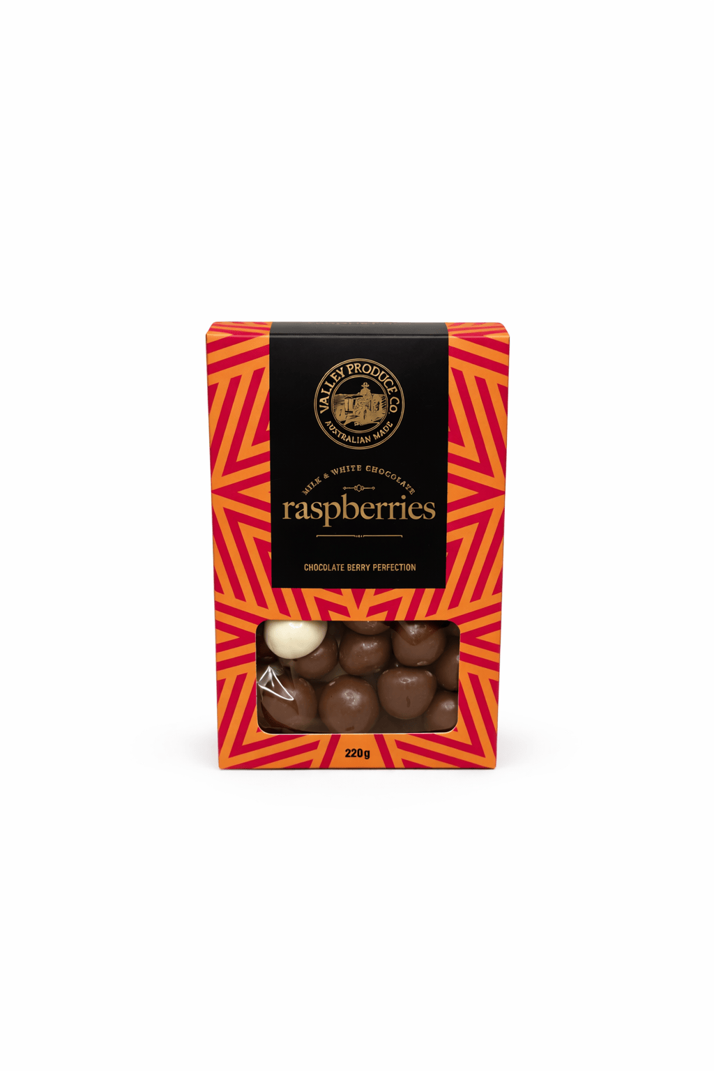 - VALLEY PRODUCE Milk & White Chocolate Coated Raspberries